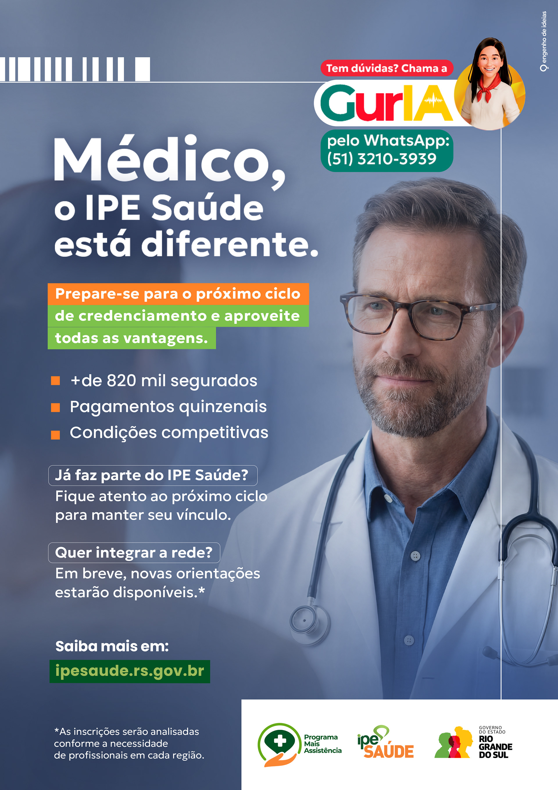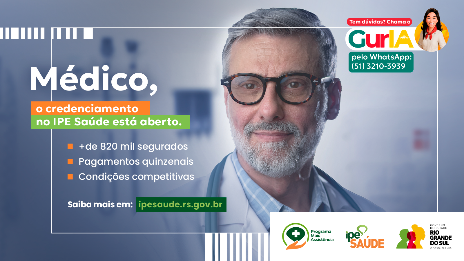Redação da campanha institucional do IPE Saúde, desenvolvendo narrativa e textos para reabertura do credenciamento médico, com foco em dados, credibilidade e atração de novos profissionais.